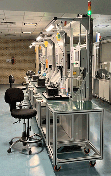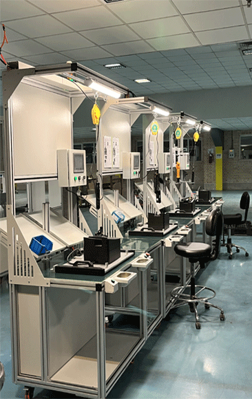 میز های مونتاژ تولیدی با تمرکز بر افزایش بهرهوری، کیفیت و در نظر گرفتن اصول ایمنی و ارگونومی اپراتور در دو نوع برنامه پذیر و ساده طراحی و اجرا شده اند. تمامی مراحل تولید از مونتاژ قطعات تا تست های کیفی نهایی محصول با دقت و هماهنگی بالا و با بهرهگیری از تجهیزات پیشرفته و سیستمهای اتوماسیون به صورت هوشمندکنترل می شود.